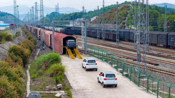 4月24日,俯瞰浙江省金华市永康东站,崭新的零跑新能源汽车正进行装车作业(无人机照片)。当日,首列装载零跑新能源汽车的货运列车从浙江省金华市永康东站驶出,标志着零跑新能源汽车在永康东站成功首运,发往江苏太仓港后出口欧洲、英国等国际市场,开辟了浙中地区的铁路物流新通道。据金华海关数据,一季度金华市电动汽车出口同比增长65.5%。其中零跑新能源汽车成为金华整车出海的“领头羊”,一季度零跑新能源汽车海外出口销量超4万辆,创历史新高。 4月24日,俯瞰浙江省金华市永康东站,崭新的零跑新能源汽车正进行装车作业(无人机照片)。 4月24日,俯瞰浙江省金华市永康东站,崭新的零跑新能源汽车正进行装车作业(无人机照片)。 4月24日,浙江省金华市永康东站,崭新的零跑新能源汽车正进行装车作业。 4月24日,浙江省金华市永康东站,崭新的零跑新能源汽车正进行装车作业。 4月24日,浙江省金华市永康东站,崭新的零跑新能源汽车正进行装车作业。 4月24日,浙江省金华市永康东站,崭新的零跑新能源汽车正有序驶入双层运输专用车厢,进行装车作业。 |